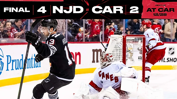 «Нью-Джерси Дэвилз»-»Каролина Харрикейнз» 4:2. Люк Хьюз набрал 2 очка (1+1), Якоб Маркстрём отразил 29 бросков. У гостей Брент Бёрнс набрал 2 очка (1+1). «Дьяволы» выиграли 3 игру подряд.