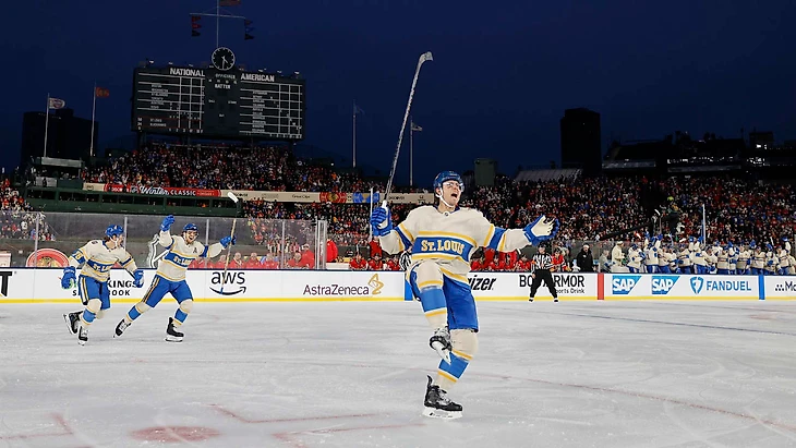 «Чикаго Блэк Хоукс»-»Сент-Луис Блюз» 2:6. Гости во втором периоде забросили 3 шайбы. Джастин Фолк набрал 3 очка (1+2), Кэм Фаулер забросил 2 шайбы, Алекс Тексьер и Дилан Холлоуэй набрали по 2 очка (1+1), Павел Бучневич отдал результативную передачу, Джордан Биннингтон отразил 28 бросков. Во втором периоде Ник Фолиньо подрался с Брэйденом Шенном. «Чёрные ястребы» проиграли 5 игру подряд. Матч проходил на стадионе «Ригли Филд».