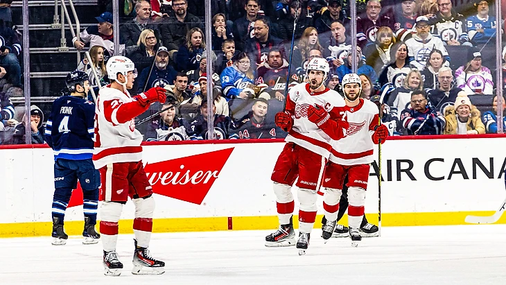 «Виннипег Джетс»-»Детройт Ред Уингз» 2:4. Лукас Рэймонд набрал 3 очка (1+2), Моритц Зайдер отдал 3 результативные передачи, Дилан Ларкин забросил 2 шайбы, Патрик Кейн отдал 2 результативные передачи, Алекс Лайон отразил 21 бросок. У хозяев Владислав Наместников отдал результативную передачу. «Красные крылья» выиграли 4 игру подряд.