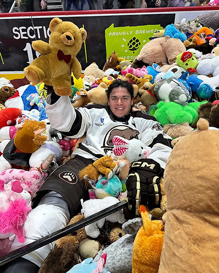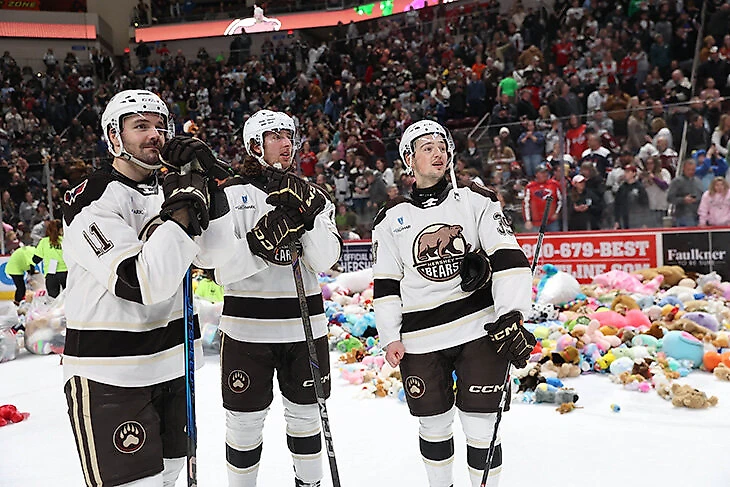 Прошлой ночью состоялся домашний матч «Херши» с акцией Teddy Bear Toss – болельщики запаслись мягкими игрушками в ожидании гола своей команды. Долго ждать не пришлось – на 15-й минуте первого периода Майкл Сгарбосса сравнял счет.