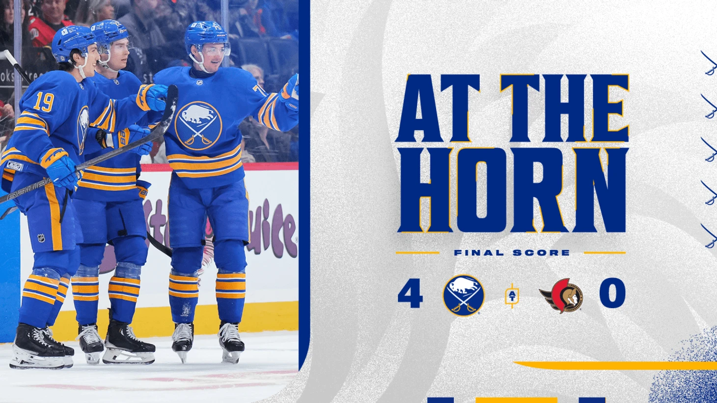 «Оттава Сенаторз»-»Буффало Сэйбрз» 0:4. Райан МакЛеод набрал 3 очка (1+2), Джек Куинн забросил 2 шайбы, Укко-Пекка Луукконен отразил 35 бросков и сыграл вторую сухую игру в сезоне. В 3 периоде Брэди Ткачук подрался с Деннисом Жильбером.