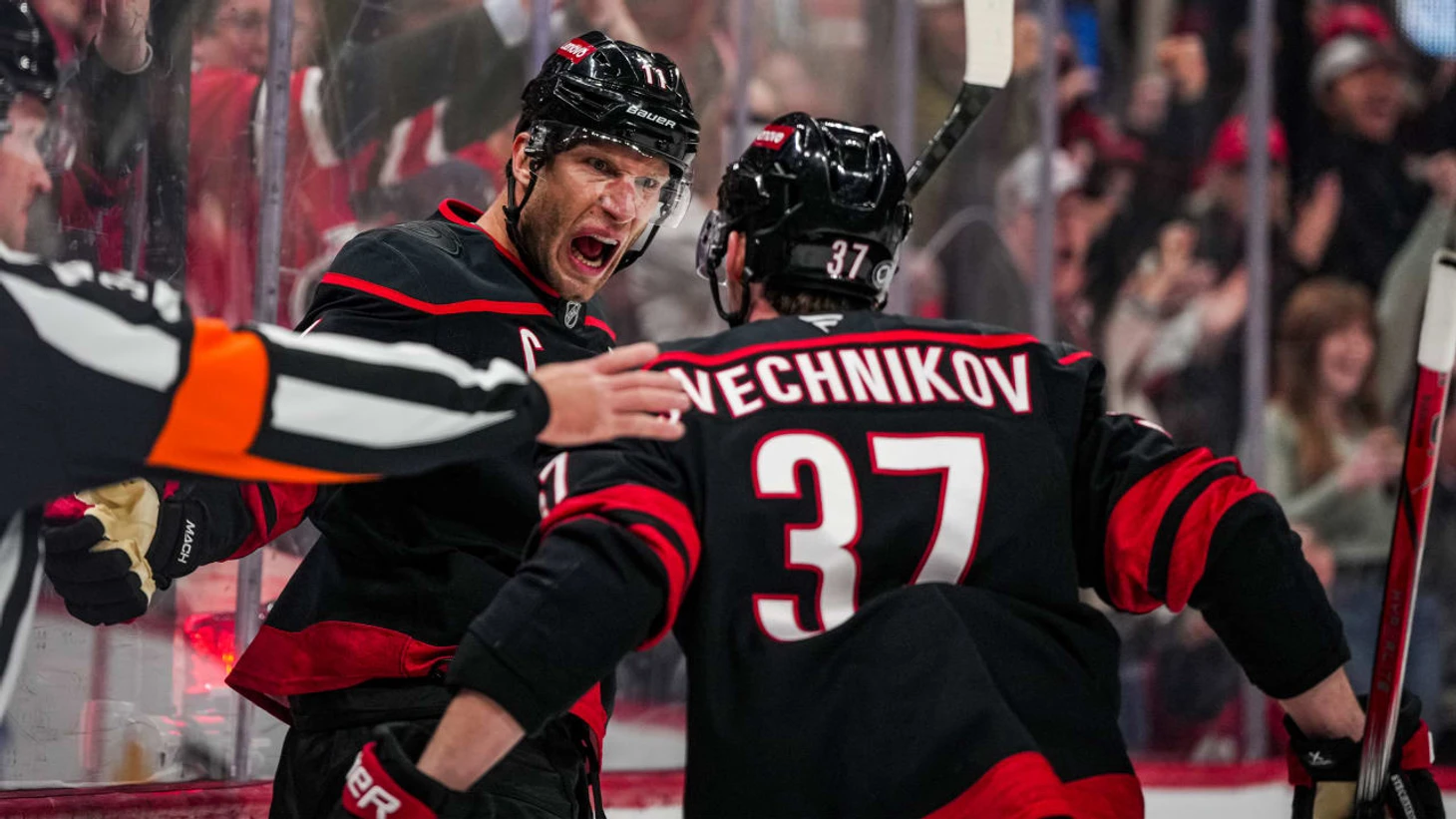 «Каролина Харрикейнз»-»Торонто Мэйпл Лифс» 6:3. Джордан Стаал забросил 3 шайбы, Джордан Мартинук отдал 3 результативные передачи, Андрей Свечников и Дмитрий Орлов отдали по результативной передаче, Пётр Кочетков отразил 30 бросков.