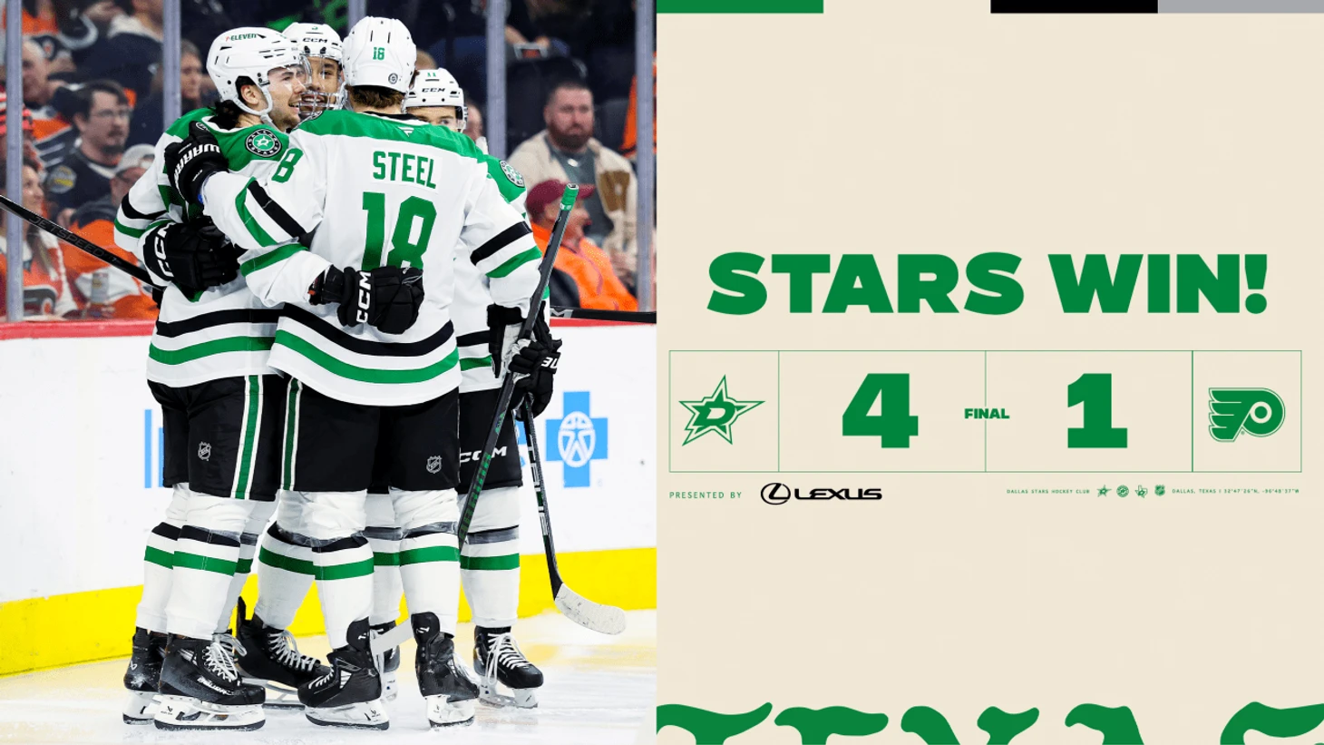 «Филадельфия Флайерс»-»Даллас Старз» 1:4. Джейсон Робертсон отдал 2 результативные передачи, Евгений Дадонов отдал результативную передачу, Кейси ДеСмит отразил 27 бросков. У хозяев Егор Замула отдал результативную передачу. «Звёзды» выиграли 6 игру подряд.