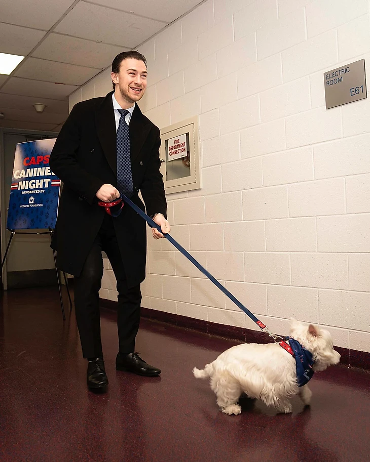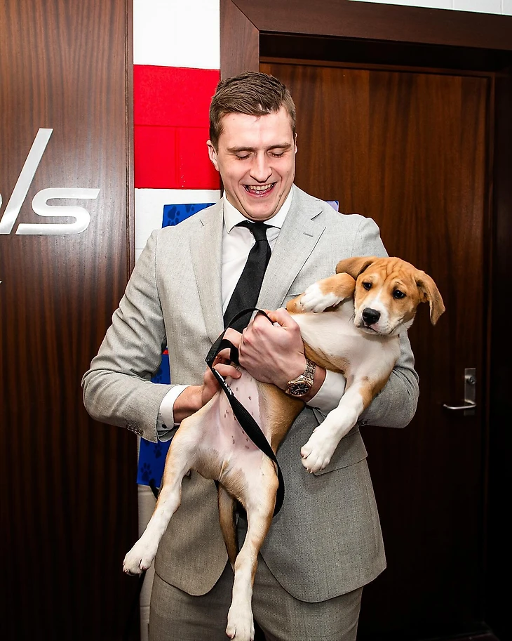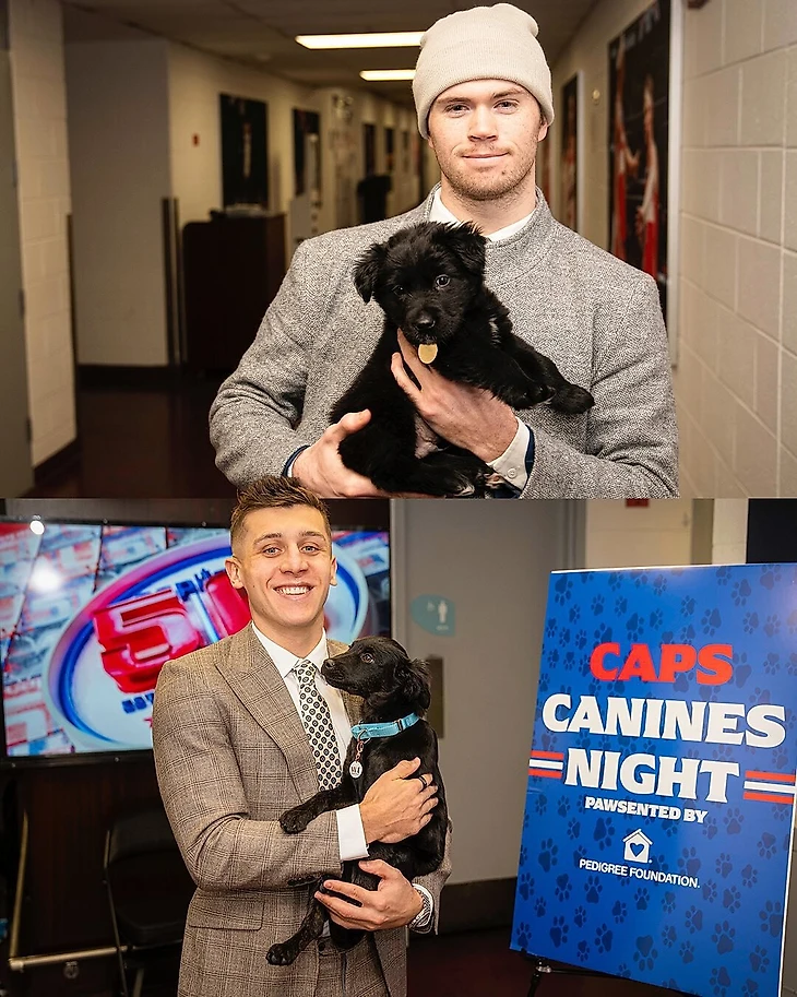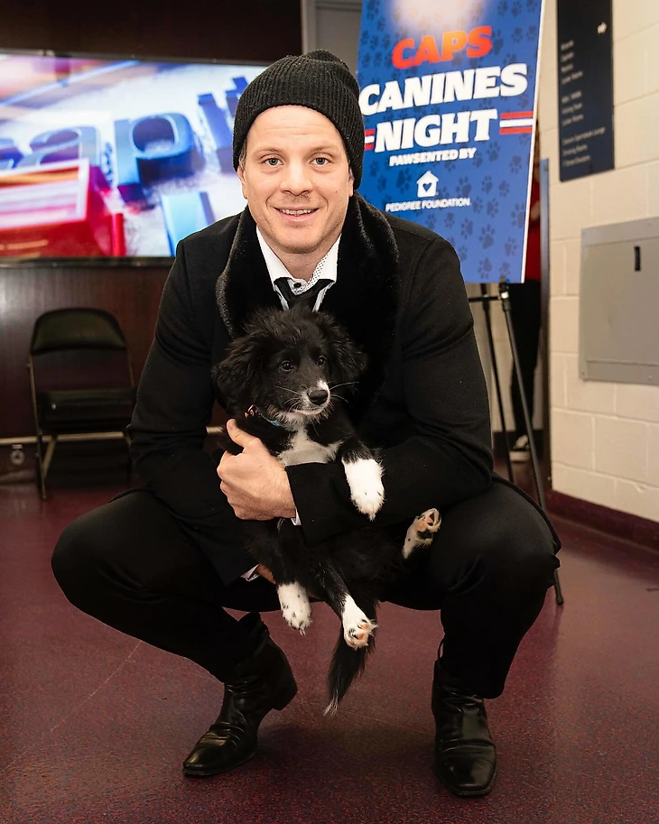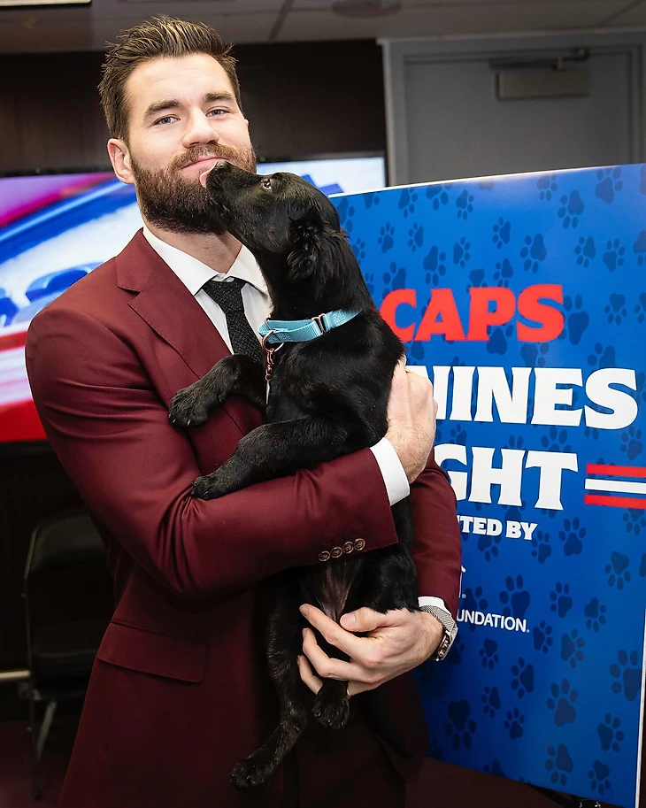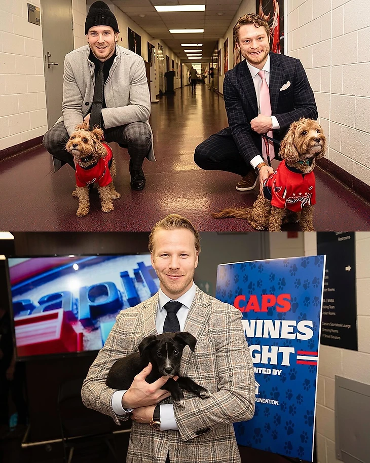В акции Caps Canine Night приняли участие и другие хоккеисты, но с менее именитыми напарниками. Некоторые люди боятся Тома Уилсона, а вот собаки – нет.