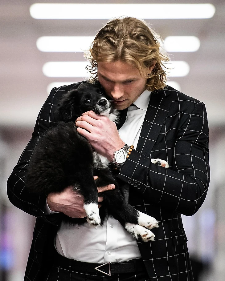 Джон Карлсон на стиле – даже собака идеально вписывается в имидж защитника.