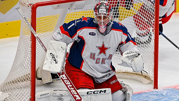 Вратарь ЦСКА Павел Хомченко в Череповце провёл свой 100-й матч в КХЛ.