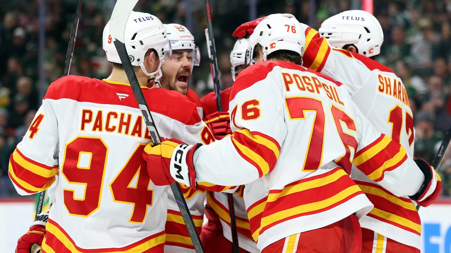 «Миннесота Уайлд»-»Калгари Флэймз» 4:5. Андрей Кузьменко набрал 3 очка (2+1), Мартин Поспишил набрал 2 очка (1+1), Егор Шарангович и Маккензи Уигар отдали по 2 результативные передачи, Дастин Вольф отразил 21 бросок. У хозяев Марко Росси отдал 3 результативные передачи, Матс Цуккарелло набрал 2 очка (1+1), Кирилл Капризов отдал результативную передачу. Во втором периоде Якуб Лауко подрался с Райаном Ломбергом. «Огоньки» выиграли 3 игру подряд.