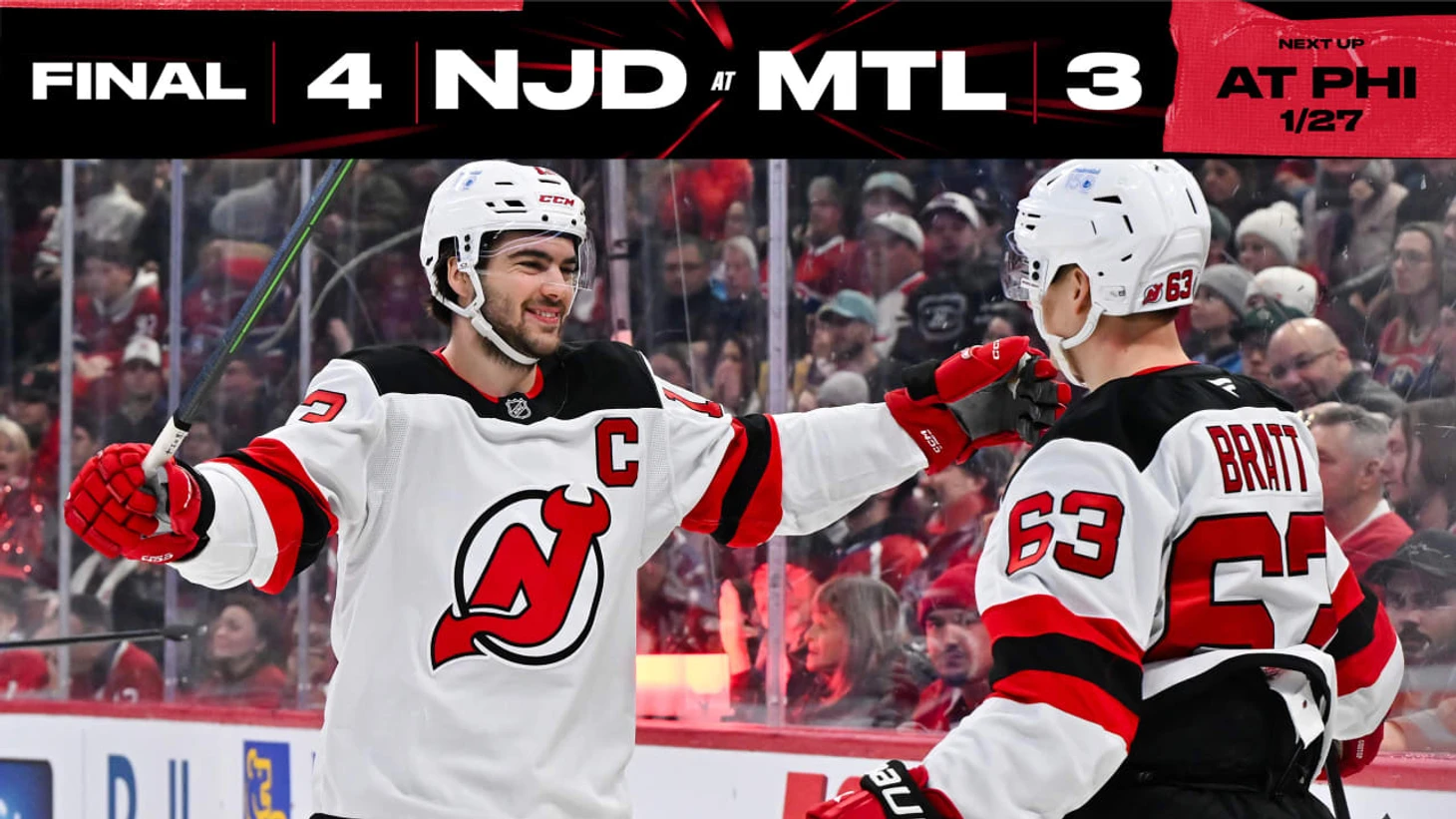 «Монреаль Канадиенс»-»Нью-Джерси Дэвилз» 3:4 (ОТ). Джек Хьюз в овертайме принёс победу гостям. Йеспер Братт набрал 2 очка (1+1), Дуги Хэмилтон отдал 2 результативные передачи, Джэк Аллен отразил 29 бросков. У хозяев Ник Сузуки набрал 3 очка (1+2), Коул Кофилд набрал 2 очка (1+1), Ярослав Слафковски отдал 2 результативные передачи.