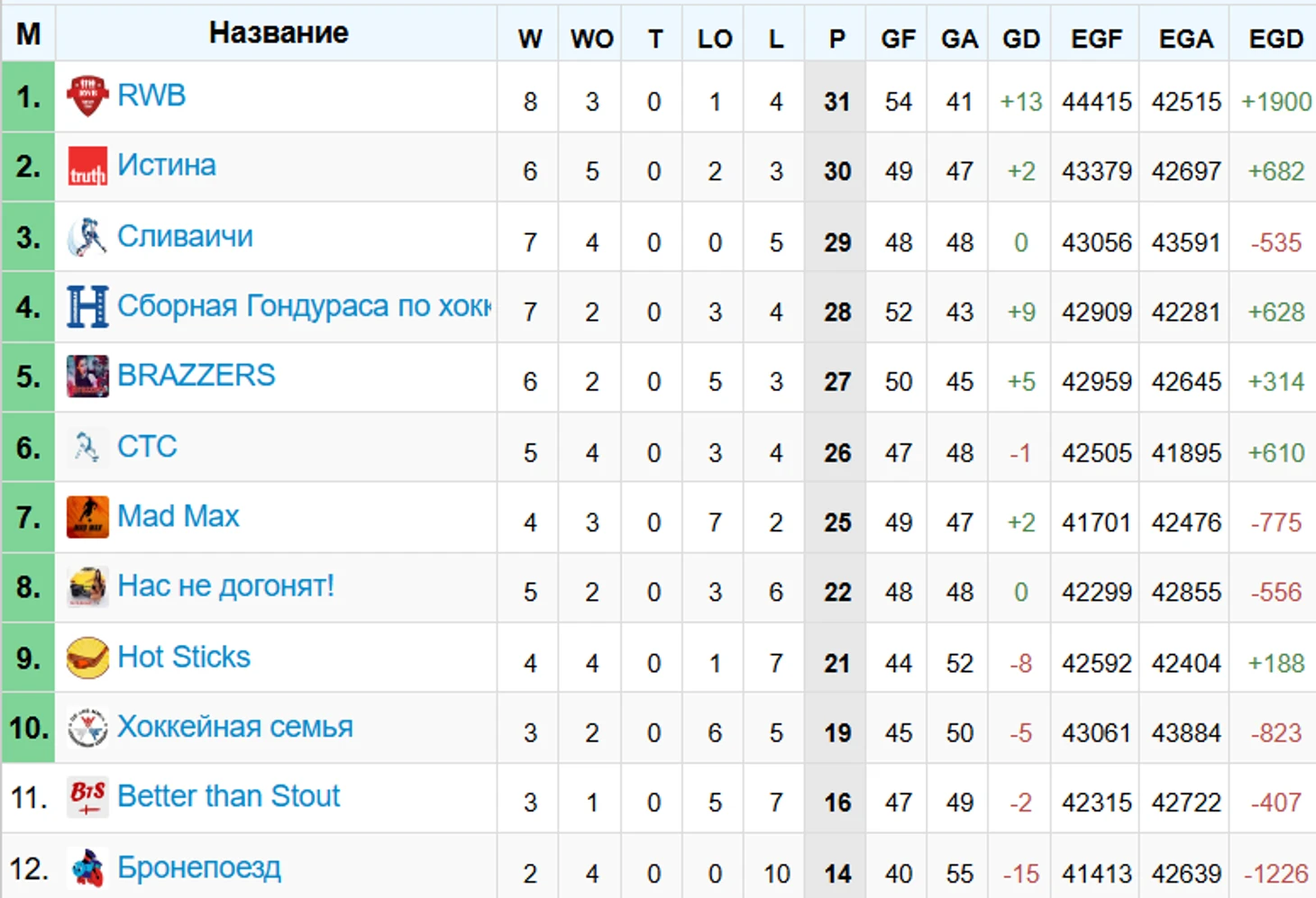 Из лиги НХЛ вылетают команды Better that Stout и Бронепоезд. Обе команды только вышли в лигу НХЛ в этом сезоне, но удержаться не смогли.