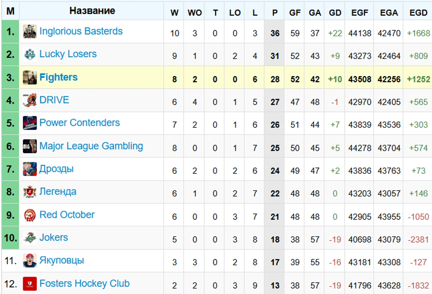 На 3-м месте команда Fighters, набравшая 28 очков и одержавшая 4 победы на 2-м этапе.
