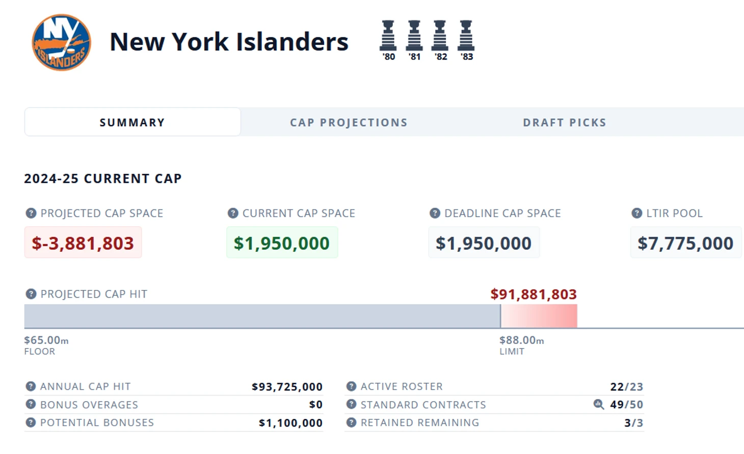 Пока пишу про переходы только одного дивизиона, поэтому, нет к примеру сделки Сета Джонса с удержанием ЗП из Чикаго в Даллас, хотя это имеет большой смысл. Да и вообще, конкретизация сделок добавит слишком большой объём в предстоящие посты. Это отдельные темы. Данные по потолку зарплат от PuckPedia.