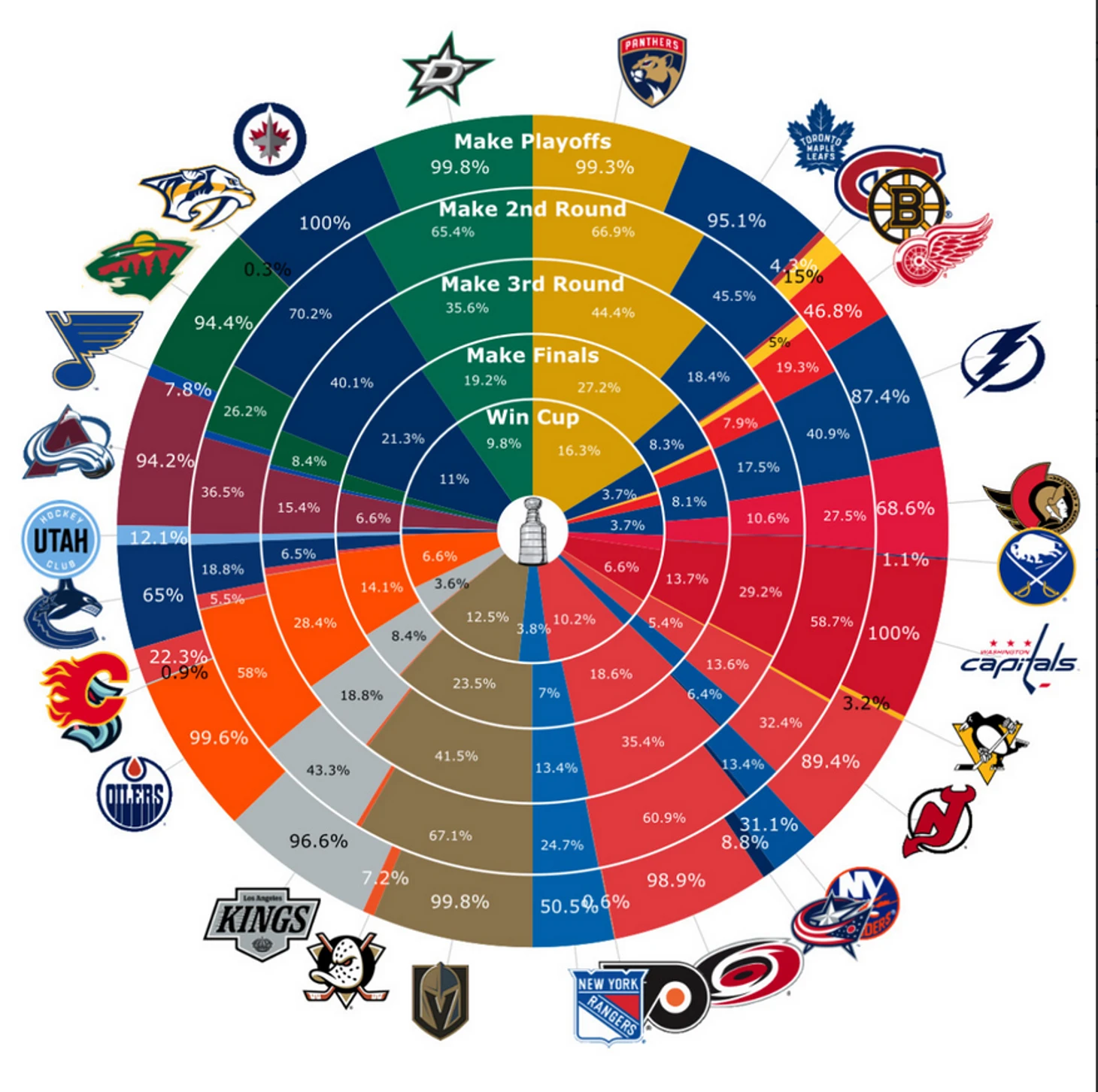 В НХЛ перерыв и значимых обменов сейчас пока нет. Время посмотреть на шансы команд по возможностям в борьбе за кубок Стэнли. Вот картинка от MoneyPuck.