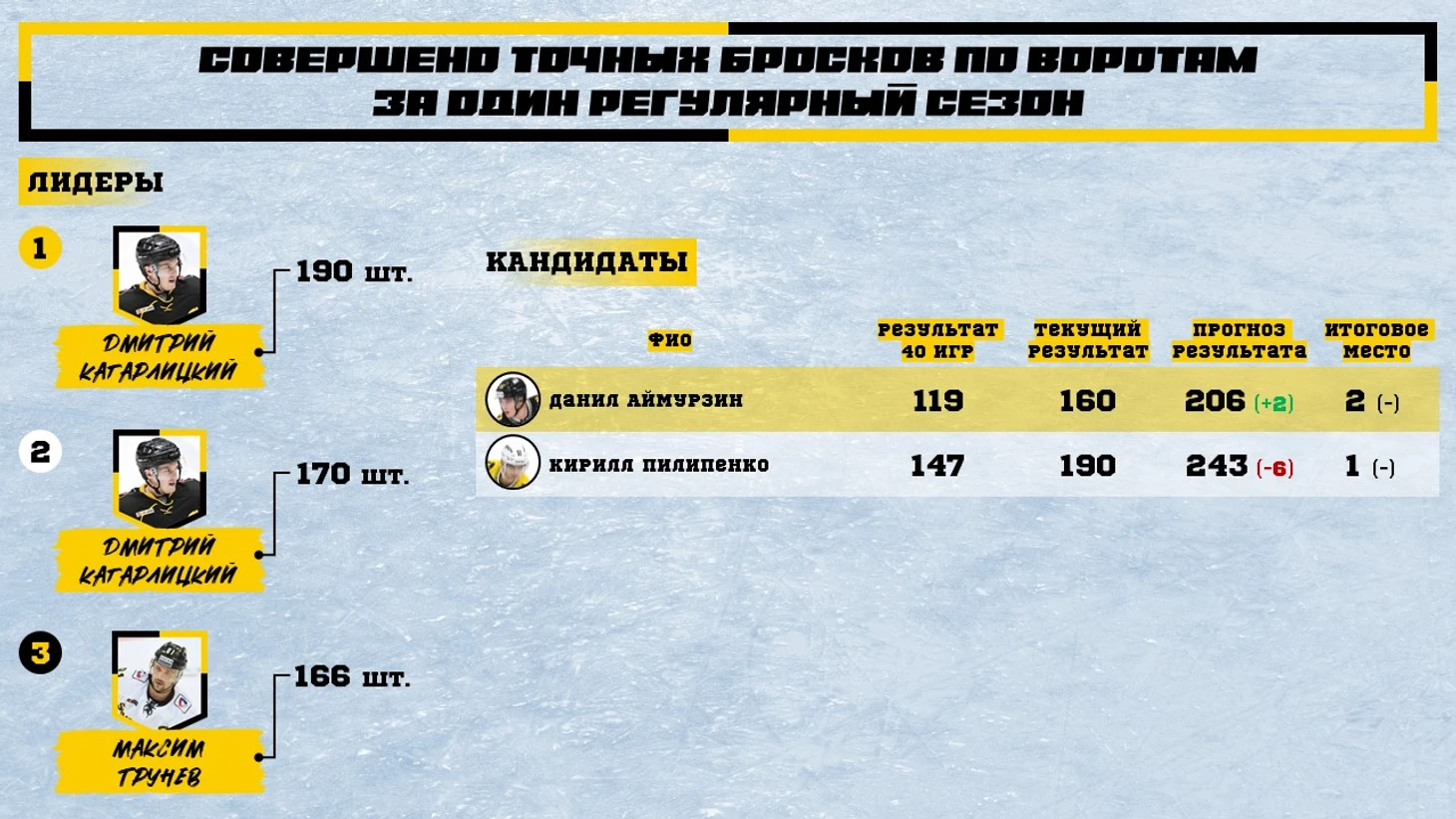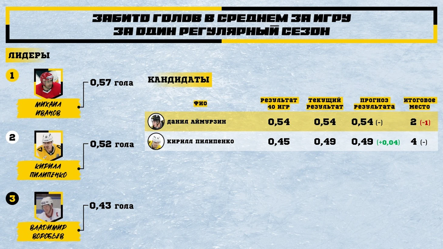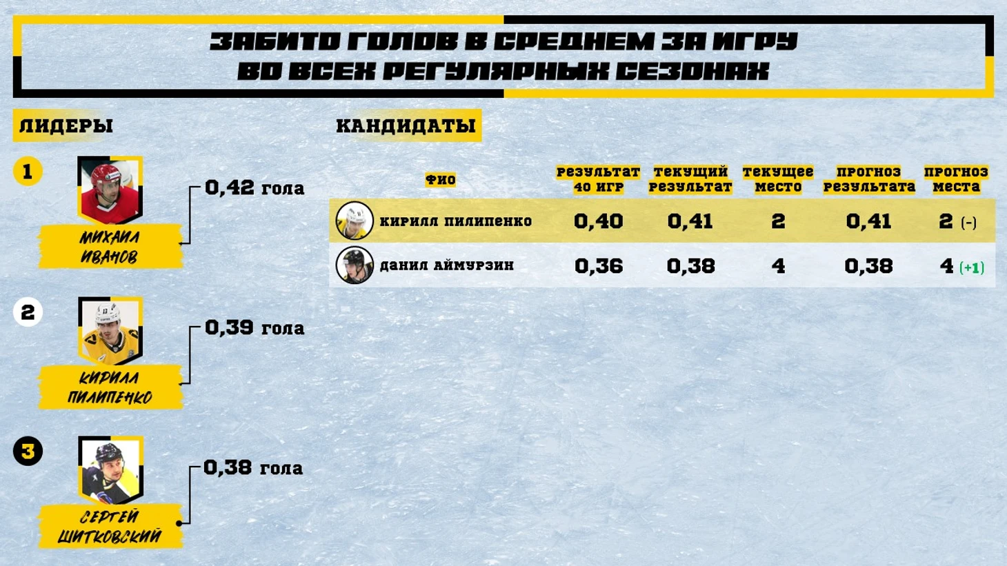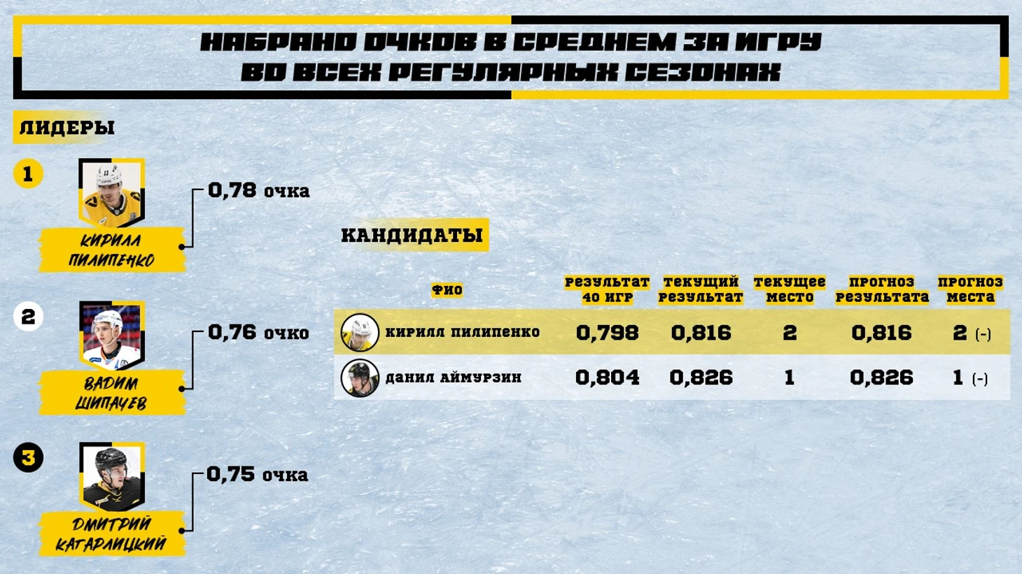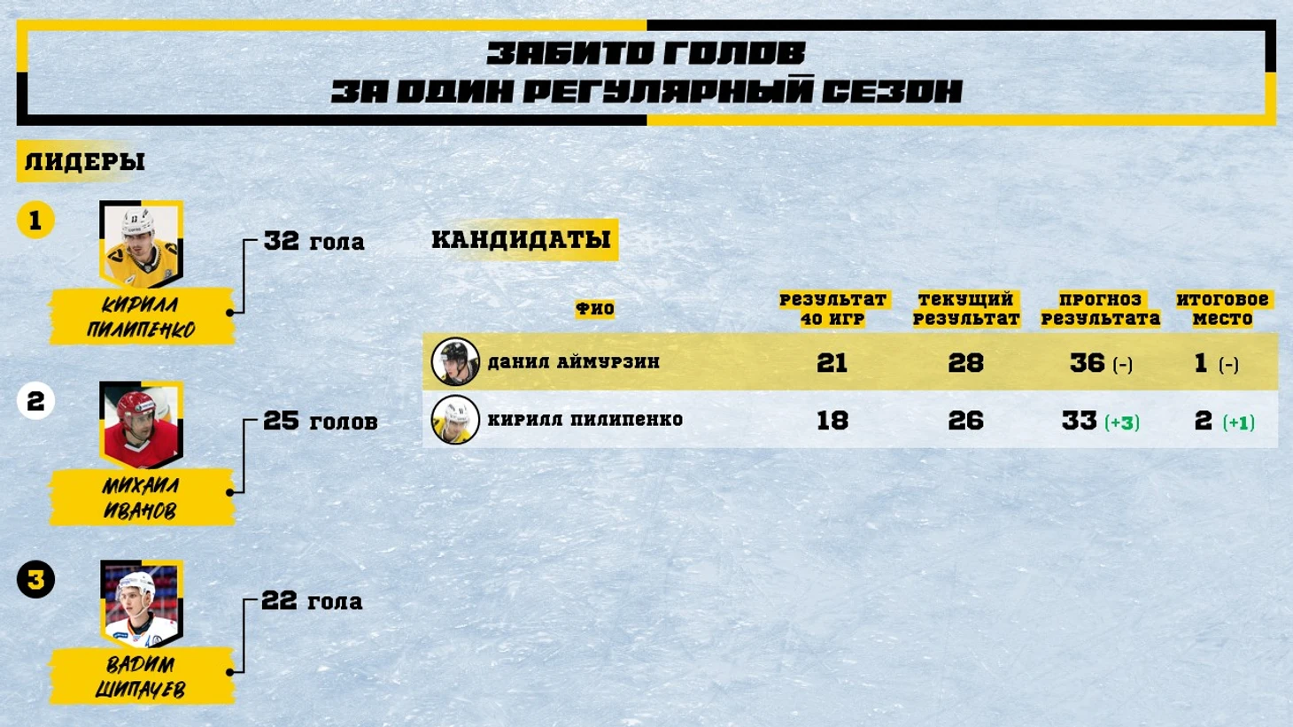 По голам в среднем за игру – и у Пилипенко, и у Аймурзина хорошие шансы на тройку, а может и на первое место.