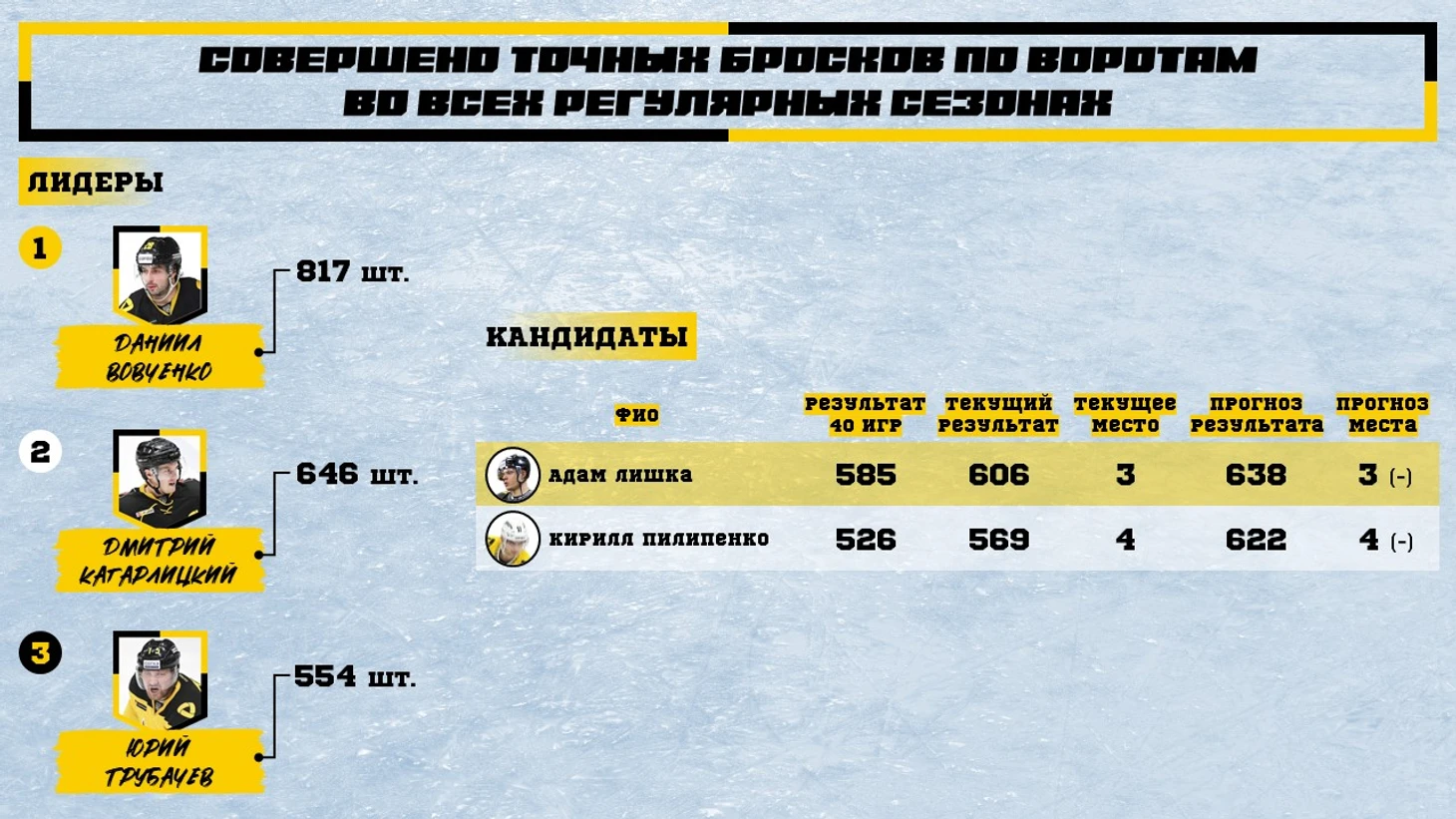 И Пилипенко, и Лишка уже обогнали Трубачева по количеству бросков по воротам, но до Кагарлицкого не дотянутся. Так что Адам станет третьим, а вот Кирилл будет ждать следующего сезона (благо контракт продлен).