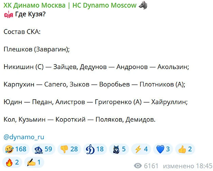 Дарья Тубольцева расписывала в телеграм-канале такое (полный пост – тут): «После переезда в Петербург профессиональнее относиться к делу он [Кузнецов] не стал, а скорее наоборот. Говорят, выездные серии проводил весело. Впрочем, главный тренер СКА был в курсе всего, более того, изначально это чуть ли не обговаривалось, и игроку дали зеленый свет».