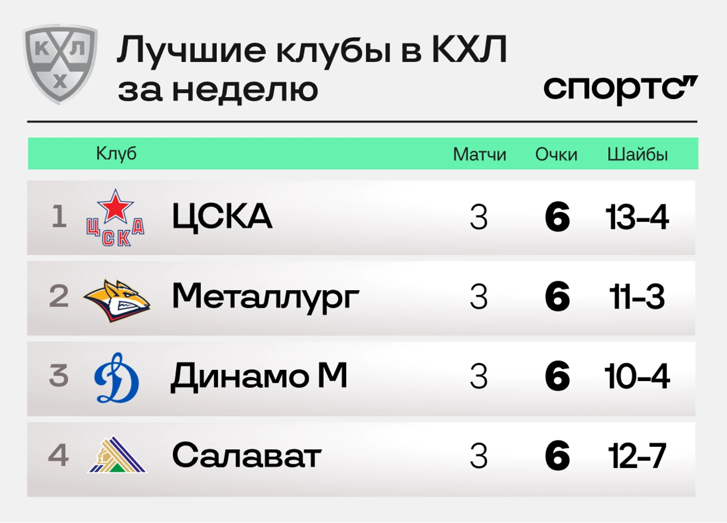 Лучшие клубы: ЦСКА, «Металлург», «Динамо» и «Салават» всех побеждают