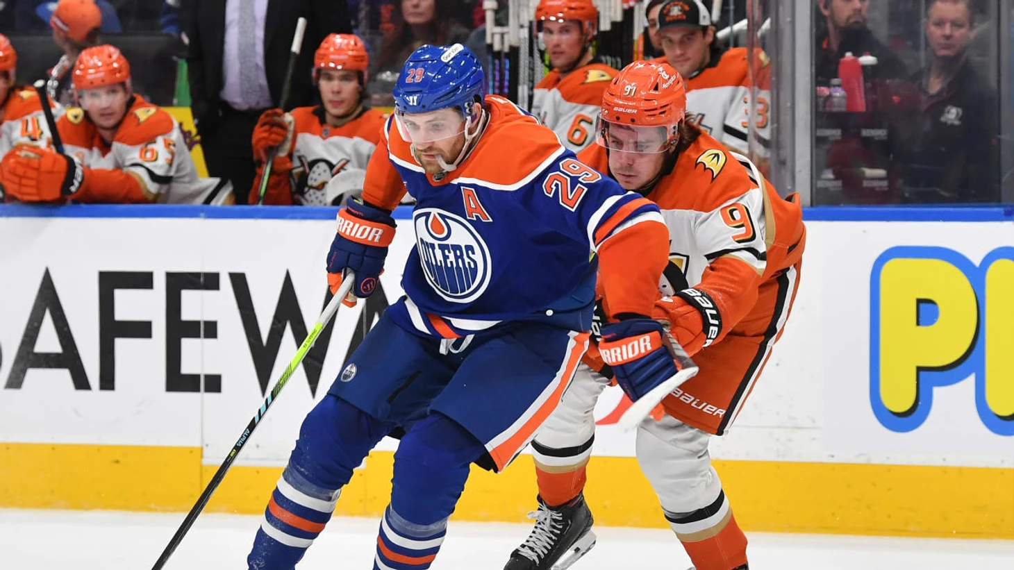 «Эдмонтон Ойлерз»-»Анахайм Дакс» 2:6. Коул Готье и Джейк ЛаКомб отдали по 3 результативные передачи, Мэйсон МакТавиш забросил 2 шайбы, Сэм Коланджело и Лео Карлссон набрали по 2 очка (1+1), Лукаш Достал отразил 33 броска. У хозяев Леон Драйзайтль и Коннор МакДэвид набрали по 2 очка (1+1).