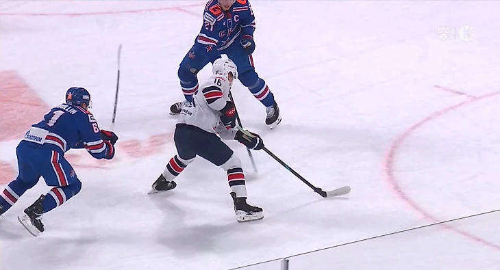 Пас низом на набегающего (за кадром) Силантьева перекрывался Александром Никишиным. В одиночку Денис Зернов вряд ли мог что-то сделать – Никишин к этому тоже был готов. Сзади еще и возвращался Марат Хайруллин.