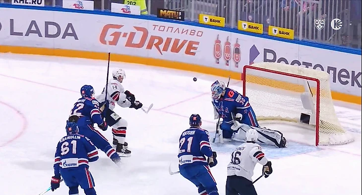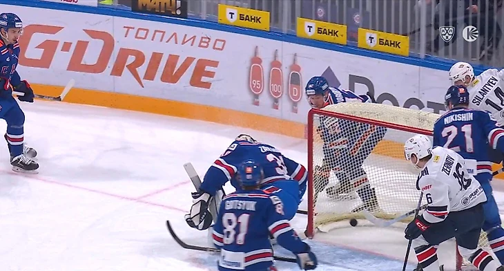 Вратарь СКА пропустил очередной странный гол. Шайба отскочила от стекла прямо ему в ногу
