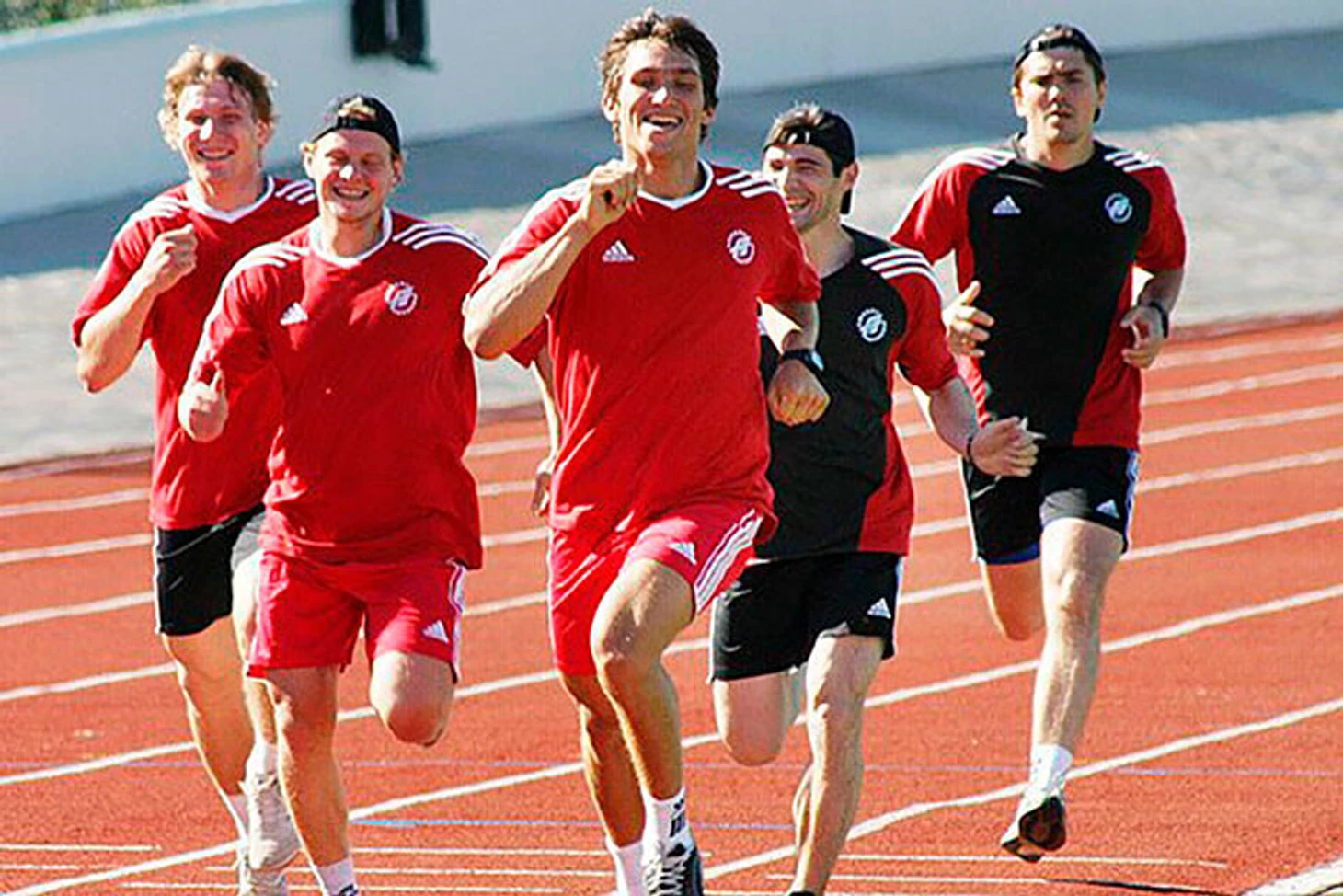 Одна из самых удивительных фотографий нулевых оттуда: Овечкин играючи обгоняет трех будущих тренеров – Антона Курьянова, Игоря Никитина и улыбающегося (!) Александра Попова. Четвертый с кадра – Александр Пережогин – отдыхает от хоккея после завершения карьеры.