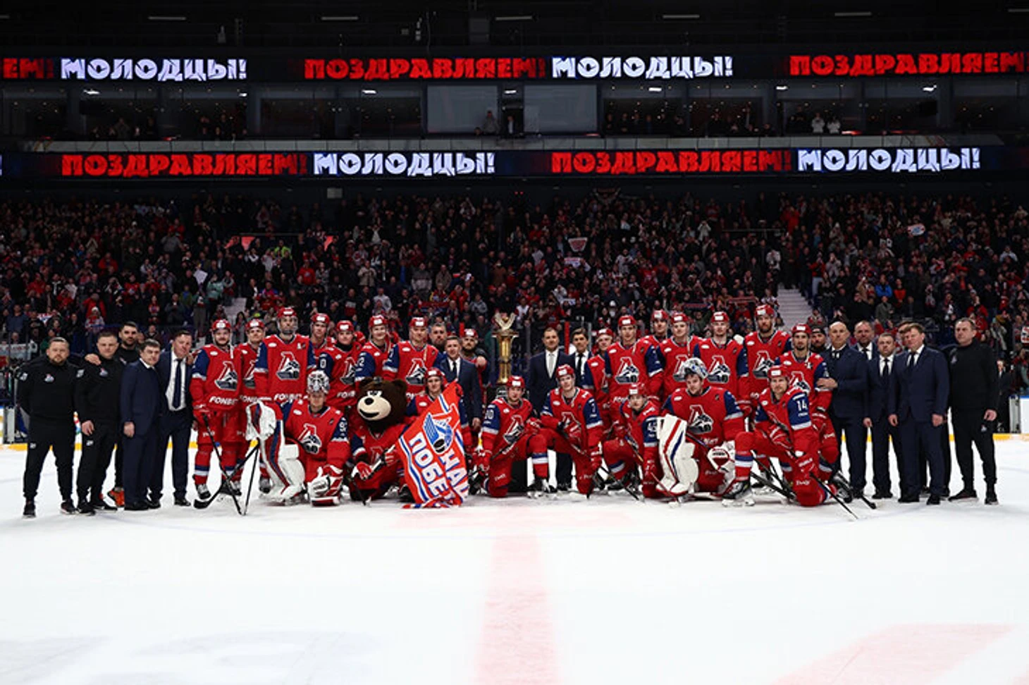 У себя в раздевалке за закрытыми дверями делайте, что хотите. Но здесь, под камеры. Все смотрят, включая соперников. Покажите, что вы мужики, что вы не боитесь суеверий, что вы выиграли, это ВАШ трофей (пофиг, что не главный), и вы никого и ничего не боитесь!