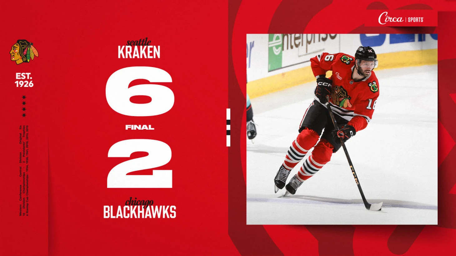 «Чикаго Блэк Хоукс»-»Сиэтл Кракен» 2:6. Адам Ларссон набрал 3 очка (1+2), Шейн Райт забросил 2 шайбы, Мэтью Бенирс набрал 2 очка (1+1), Андре Бураковски отдал 2 результативные передачи, Джо Даккорд отразил 27 бросков. «Чёрные ястребы» проиграли 4 игру подряд.