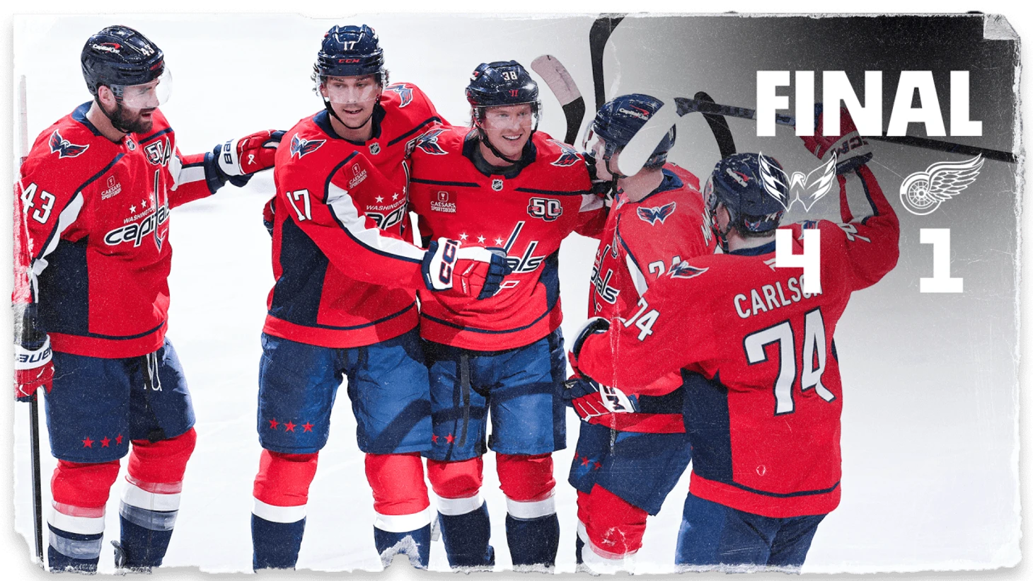 «Вашингтон Кэпиталз»-»Детройт Ред Уингз» 4:1. Хозяева в 3 периоде забросили 3 шайбы. Дилан Стром набрал 2 очка (1+1), Алексей Протас отдал 2 результативные передачи, Александр Овечкин отдал результативную передачу, Логан Томпсон отразил 23 броска.