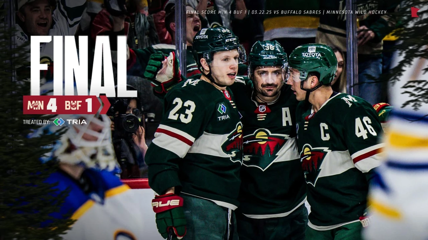 «Миннесота Уайлд»-»Буффало Сэйбрз» 4:1. Хозяева во втором периоде забросили 3 шайбы. Матс Цуккарелло набрал 2 очка (1+1), Мэтт Болди отдал 2 результативные передачи, Яков Тренин отдал результативную передачу, Филип Густавссон отразил 20 бросков. «Дикари» выиграли 3 игру подряд.