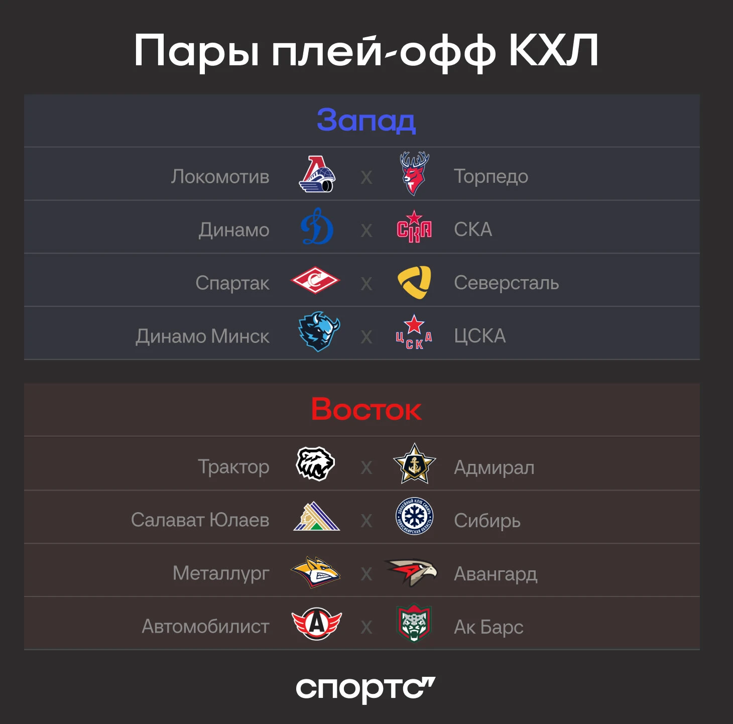 В КХЛ официально завершилась регулярка-2024/25. Примерно неделю мы уже знали состав участников розыгрыша Кубка Гагарина. Вот только раскладка по парам сформировалась в последний момент.