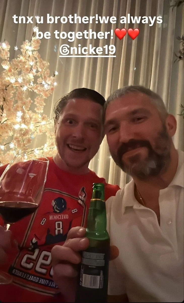 А после рекордного гола пиво лилось рекой! Видео и фото с вечеринки игроков заполнили соцсети. На одном из них Ови стоял рядом с Никласом Бэкстремом. Россиянин держал в руках бутылку пива, а швед – бокал вина. И вряд ли это та же бутылка, которую Овечкину вручили на входе.