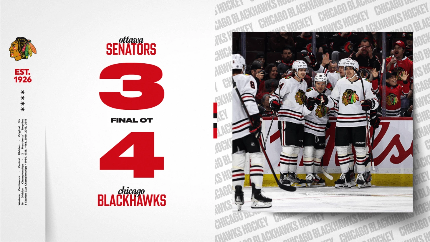 «Оттава Сенаторз»-»Чикаго Блэк Хоукс» 3:4 (ОТ). Франк Назар в овертайме принёс победу гостям. Коннор Бедард набрал 3 очка (2+1), Спенсер Найт отразил 34 броска. У хозяев Дилан Козенс отдал 2 результативные передачи.