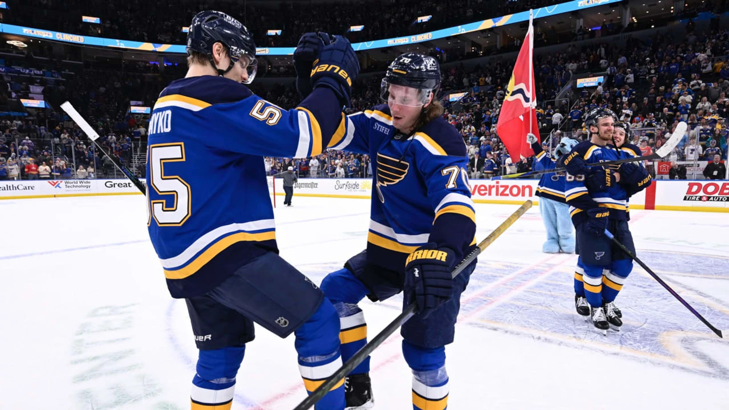 «Сент-Луис Блюз»-»Юта» 6:1. Хозяева в первом периоде забросили 4 шайбы. Павел Бучневич набрал 3 очка (1+2), Джордан Кайру забросил 2 шайбы, Брэйден Шенн с Заком Болдуком и Джимми Снаггерудом набрали по 2 очка (1+1), Роберт Томас и Кэм Фаулер отдали по 2 результативные передачи, Алексей Торопченко отдал результативную передачу, Джордан Биннингтон отразил 32 броска. У гостей Михаил Сергачёв отдал результативную передачу.