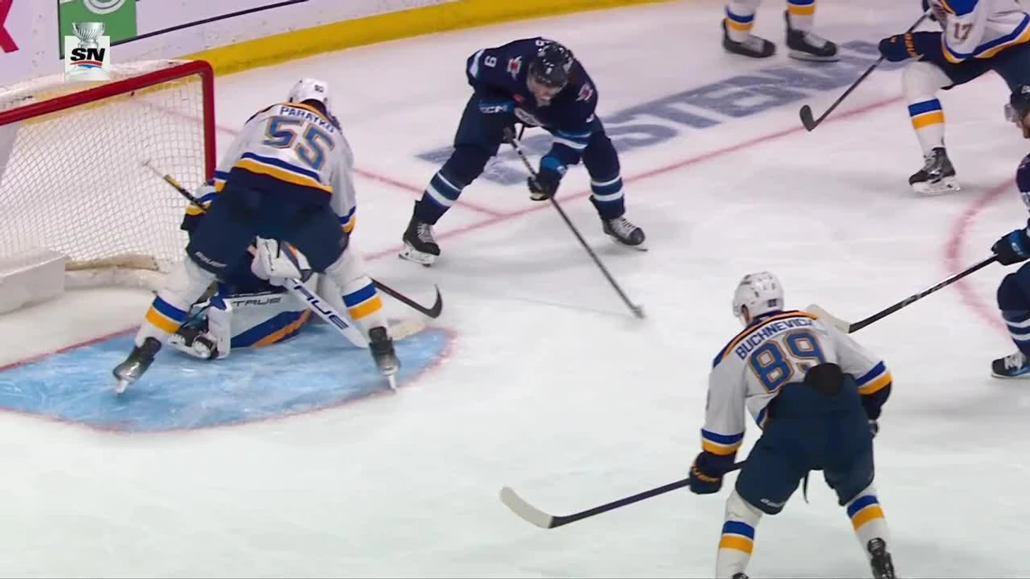 «Виннипег Джетс»-»Сент-Луис Блюз» 5:3. Хозяева в 3 периоде забросили 3 шайбы. Марк Шайфли и Кайл Коннор набрали по 3 очка (1+2), Джош Моррисси отдал 2 результативные передачи, Коннор Хеллебайк отразил 14 бросков. У гостей Джастин Фолк отдал 2 результативные передачи, Павел Бучневич отдал результативную передачу. В конце матча состоялась массовая драка. «Сверхзвуковые» повели в серии 1-0.