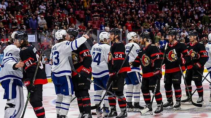 «Оттава Сенаторз»-»Торонто Мэйпл Лифс» 2:4. Вильям Нюландер набрал 3 очка (2+1), Макс Пачиоретти набрал 2 очка (1+1), Энтони Столарц отразил 21 бросок. У хозяев Томас Шабо отдал 2 результативные передачи. «Кленовые листья» выиграли серию 4-2 и вышли в следующий раунд.