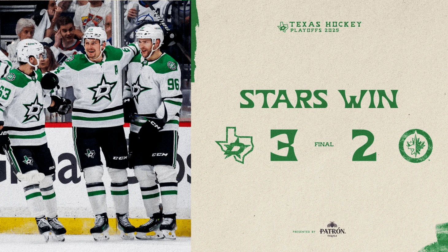 «Виннипег Джетс»-»Даллас Старз» 2:3. Микко Рантанен забросил 3 шайбы, Евгений Дадонов и Илья Любушкин отдали по результативной передаче, Джек Оттинджер отразил 30 бросков. «Звёзды» повели в серии 1-0.