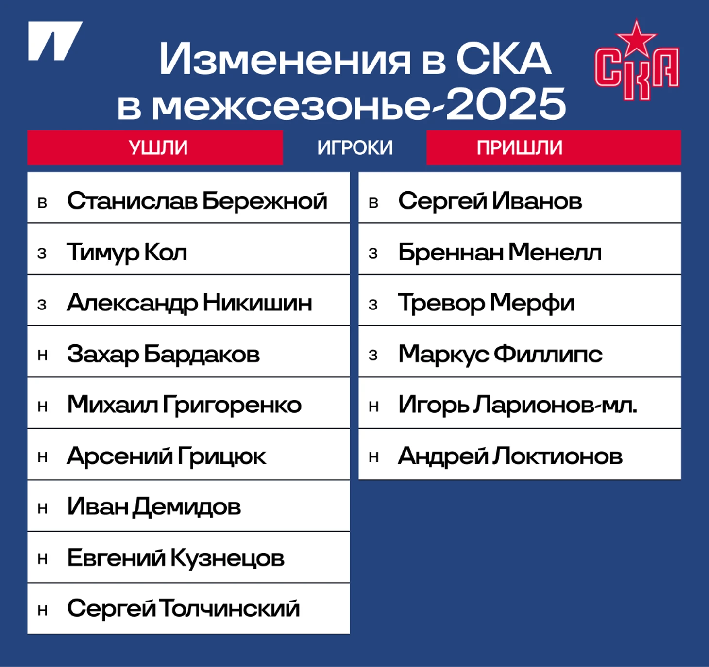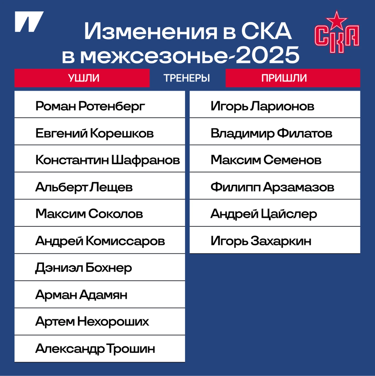 Как перестраивается СКА: ушли ключевые игроки, а Ларионов набирает старых знакомых