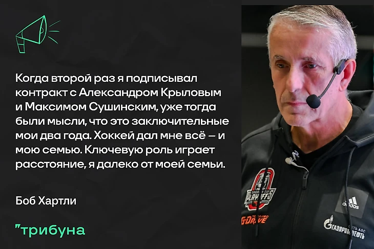 Боб Хартли — настоящая звезда, символ борьбы и несокрушимости в Омске. Именно он привел клуб к своему первому Кубку Гагарина. Именно он был с командой всегда: как в самые радостные моменты, так и самые сложные. Именно под его руководством в команде появились очень солидные воспитанники и просто талантливые молодые игроки: Михеев, Чинахов, Грицюк, Чистяков. И, конечно, когда тренер, мог ассоциировать себя в России только с одной командой, который является иконой только в одном городе, вдруг неожиданно подписывает контракт с другой командой и едет в иное место, это говорит о многом.