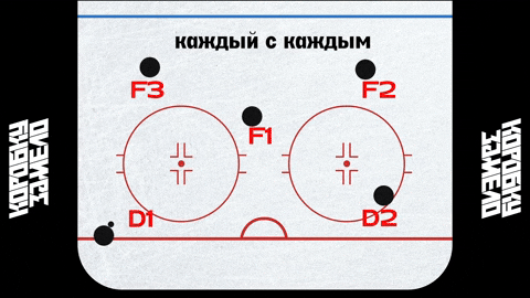 - Да, и гибридная схема – агрессивная. Побежал за своим игроком, взял его, посадил на вилы и привез в борт. Потом туда, к борту, спустились все остальные, вы как бы закрыли маленькую зонку и находитесь там впятером. А если шайба поднимается наверх, то играем каждый с каждым.