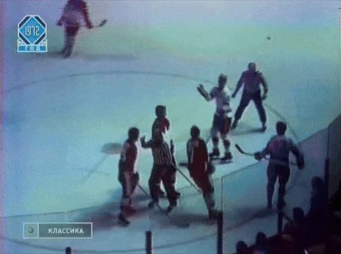 Момент, который подсвечивает разницу соперников и помогает получше понять суть всей серии. Последние минуты, Канада уже ничего не исправит. Фил Эспозито просто бьет Владимира Петрова. Причем Петров с опущенными руками, не в стадии конфликта.