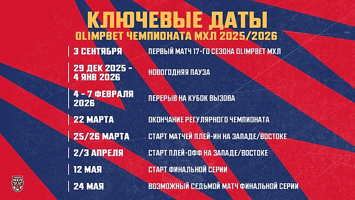 Регулярный чемпионат пройдет с 3 сентября 2025 по 22 марта 2026 года. В нем будет две паузы: новогодняя с 29 декабря по 4 января и на Кубок Вызова с 4 по 7 февраля 2026 года.