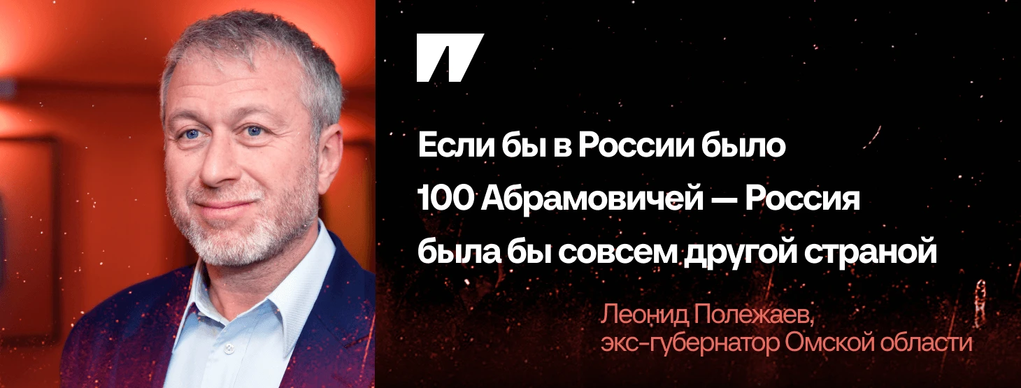 – Ну, как я вам могу объяснить… Меня часто спрашивают, я говорю: «Если бы в России было 100 Абрамовичей – Россия была бы совсем другой страной». Почему о нем больше всех говорят, чем о каких-либо других олигархах? Это очень одаренный человек. Как вам еще объяснить?