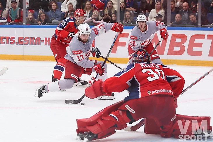 В дебюте матча ЦСКА умудрился получить два удаления подряд. На скамейку для штрафников проследовали ведущие защитники Владислав Провольнев и Никита Нестеров. Таким подарком красно-белые не могли не воспользоваться, и Даниил Орлов «прошил» Мартина Спенсера. 1:0.