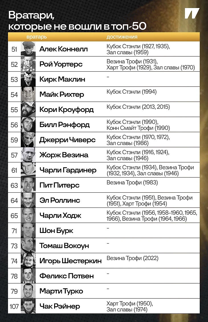 Но сначала я покажу несколько классных вратарей, которые не попали в топ-50.