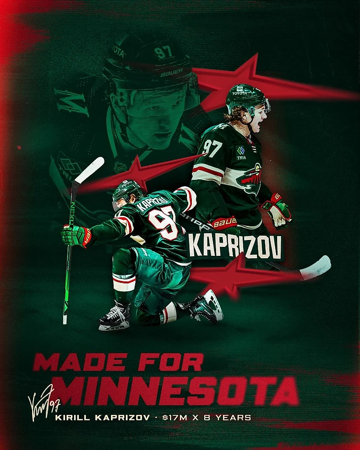 Капризов — самый высокооплачиваемый хоккеист в истории НХЛ! Кирилл подписал с «Миннесотой» контракт на восемь лет и 17 млн $ в год! Общая сумма сделки — 136 $ млн.