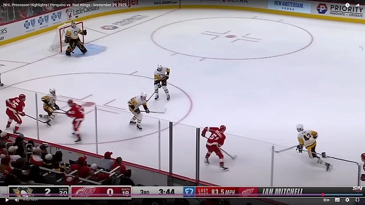 Контуры игры. Понемногу становится понятно, как будет играть этот «Питтсбург» и за счёт чего он планирует побеждать. Судя по всему, Дэн Мьюз — сторонник активной игры по всей площадке, его крайние форварды постоянно участвуют в форчекинге. При этом четыре игрока почти всегда успевают вернуться на свою синюю линию.