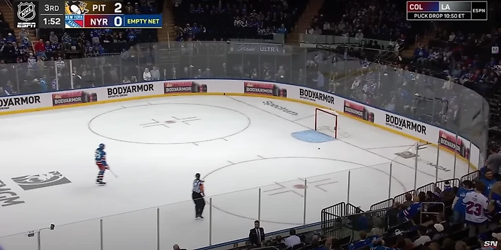 Ещё через 20 секунд «Рейнджерс» снова увидели красный свет за своими воротами. Четвёртое звено «Пенс» не дало им толком закрепиться в зоне. Дьюар заблокировал неподготовленный бросок Фокса, Ши откинул шайбу Лизотту, а тот как заправский снайпер метнул шайбу в сторону ворот хозяев и попал, куда надо. 3:0 — и дальше можно уже не играть.