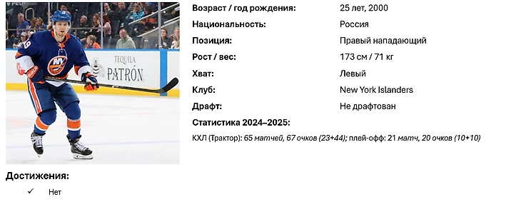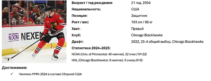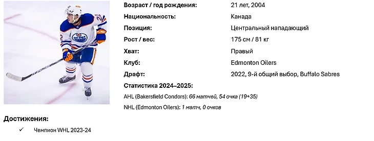 Арсений Грицюк - нападающий с элитной скоростью, гибким катанием и хорошим броском, ставший одним из лидеров КХЛ перед переходом в НХЛ. Грицюк уже обладает опытом взрослого хоккея, технической зрелостью и ментальной стойкостью, что отличает его от большинства новичков.