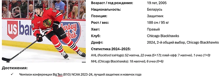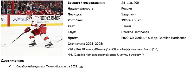 При написании использовались источники: www.eliteprospect.com, www.puckpedia.com, the Аthletic, www.nhl.com, thehockeywriters.com, dobberprospects.com