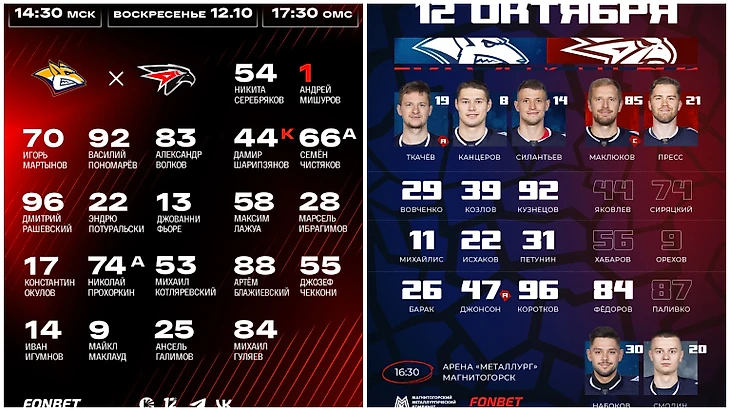 Фото: https://www.hawk.ru/media-content/photo/2931/ / https://metallurg.ru/media/photo/5118/ / https://video.khl.ru/events/2842523?locale=ru
