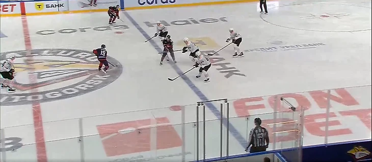 Переходя к сопернику «ястребов», могу сказать, что у них подобных провалов не наблюдалось. Команда, наоборот, находилась в хорошей форме, имея за спиной серию из 5 победных матчей подряд. В текущей же встрече команда лишь ближе к эпицентру первого периода стала показывать, почему она является одной из топовых с точки зрения смотрибельности. Главным акцентом, на который «Магнитка» ставит по ходу всех игр под руководством Разина, являются быстрые передачи, молниеносный переход из одной фазы в другую и, конечно, поперечные передачи, которые не раз позволяли «хозяевам» ломать оборону соперника.